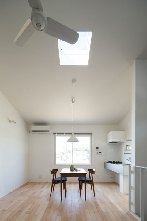 【設備 2階】モニター付きインターフォン、エアコン、追い焚き機能付き風呂、ガスコンロ2口、シーリングファン、シーリング照明、LEDスポットライト、天窓、無垢材のフローリング、ロフト、インターネット無料
